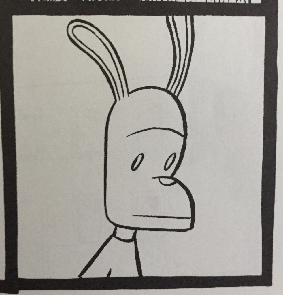 In Hey, Wait…, the narrative could easily be as readable even if Jason had decided to create interruption panels, through shifting his page-layout, for a few of the major events. The deliberate choice to equally assign meaning to each panel through layout, however, contributes to the ordinariness the individual panels project. Schneider elaborates on the impact of such layout (though the term grid is replaced with another):